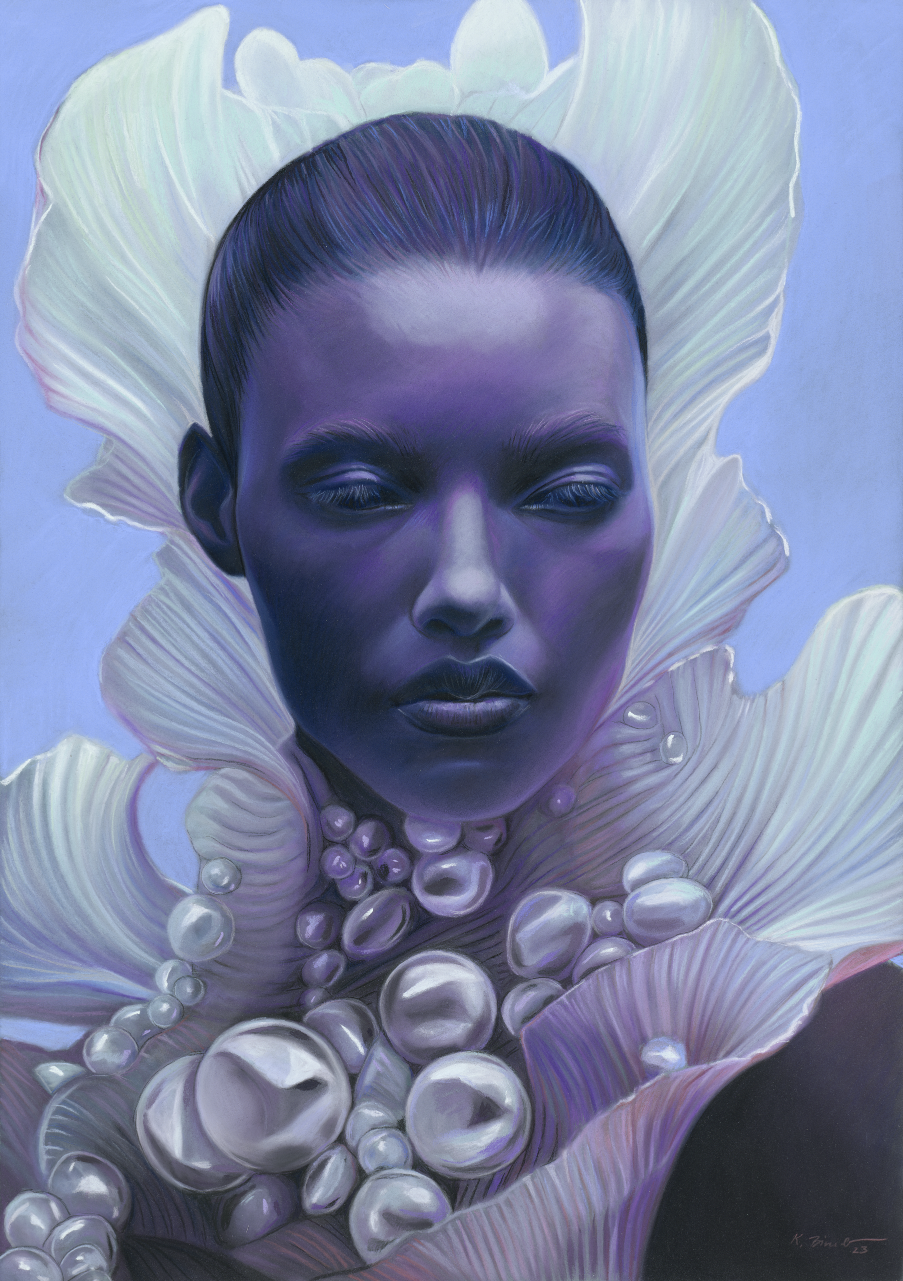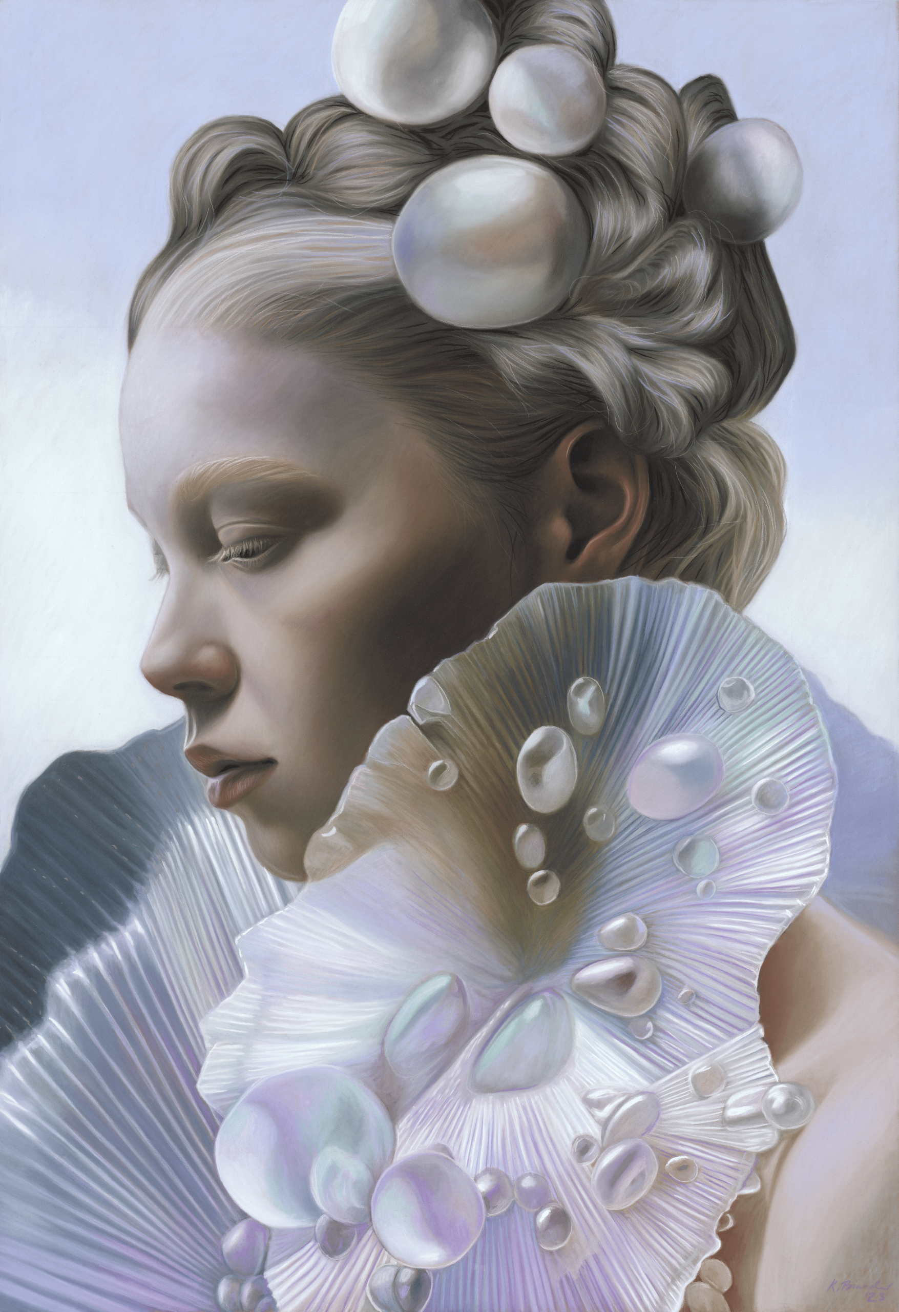 In ihrer künstlerischen Arbeit verbindet Katha Bineider die verzauberte, märchenhafte Kompositionstiefe alter Meister mit einer für Pastellmalerei untypischen hyperrealistischen Detailtreue.